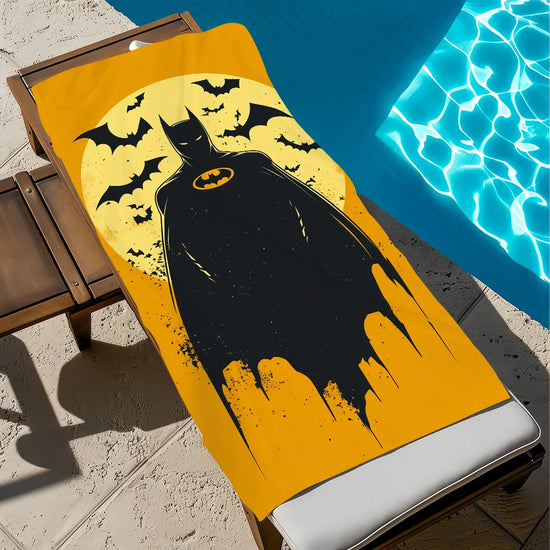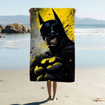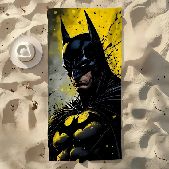 Pensée pour ceux qui aiment les univers nocturnes, sombres, mystérieux et vigilants, cette serviette de bain Batman accompagne les fans de Gotham après la douche, la baignade, ou une séance de natation.