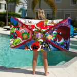 Pensée pour ceux qui aiment les univers malicieux, verts, hivernaux et originaux, cette serviette de bain Grinch accompagne les petits et grands farceurs après le bain, la douche, ou lors d'une séance au spa.