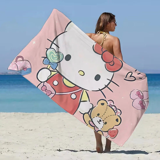 Pensée pour ceux qui aiment les univers mignons, roses, japonais et féminins, cette serviette de bain Hello Kitty accompagne les fans du petit chaton après le bain, la douche, ou lors d'une sortie à la piscine.
