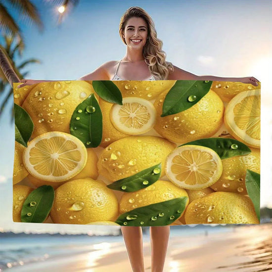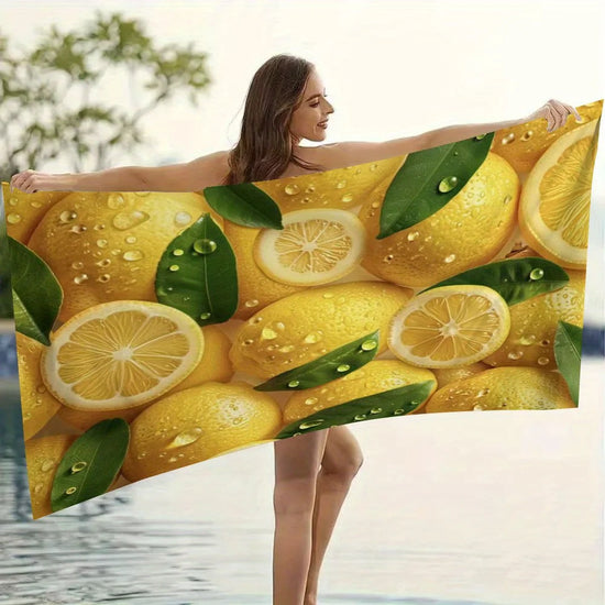Pensée pour ceux qui aiment les designs acidulés, solaires, vifs et toniques, cette serviette de bain jaune citron accompagne toute la famille après le bain, la douche, ou lors d'un après-midi à la piscine.