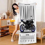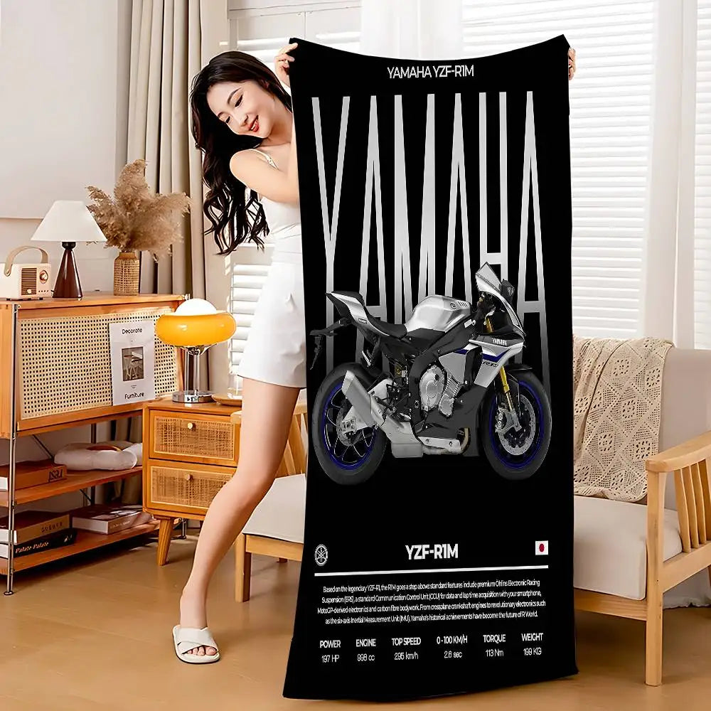 Pensée pour ceux qui aiment les univers mécaniques, vrombissants, sportifs et moteurs, cette serviette de bain Kawasaki accompagne les passionnés de moto après une sortie sur circuit, la douche, ou lors d'un événement de sports mécaniques.