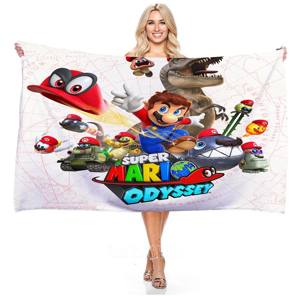 Pensée pour ceux qui aiment les univers ludiques, pixélisés, colorés et animés, cette serviette de bain Mario accompagne les fans du plombier après le bain, la douche, ou lors d'une sortie à la piscine.