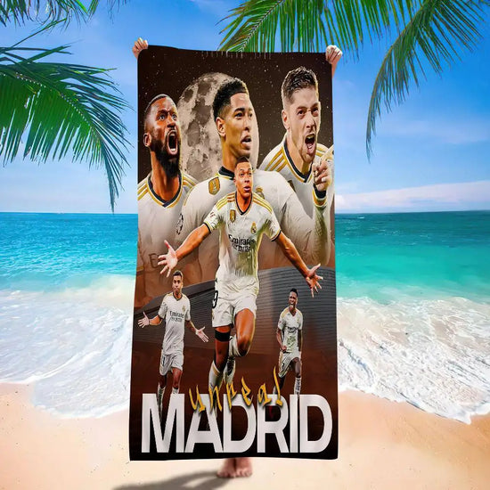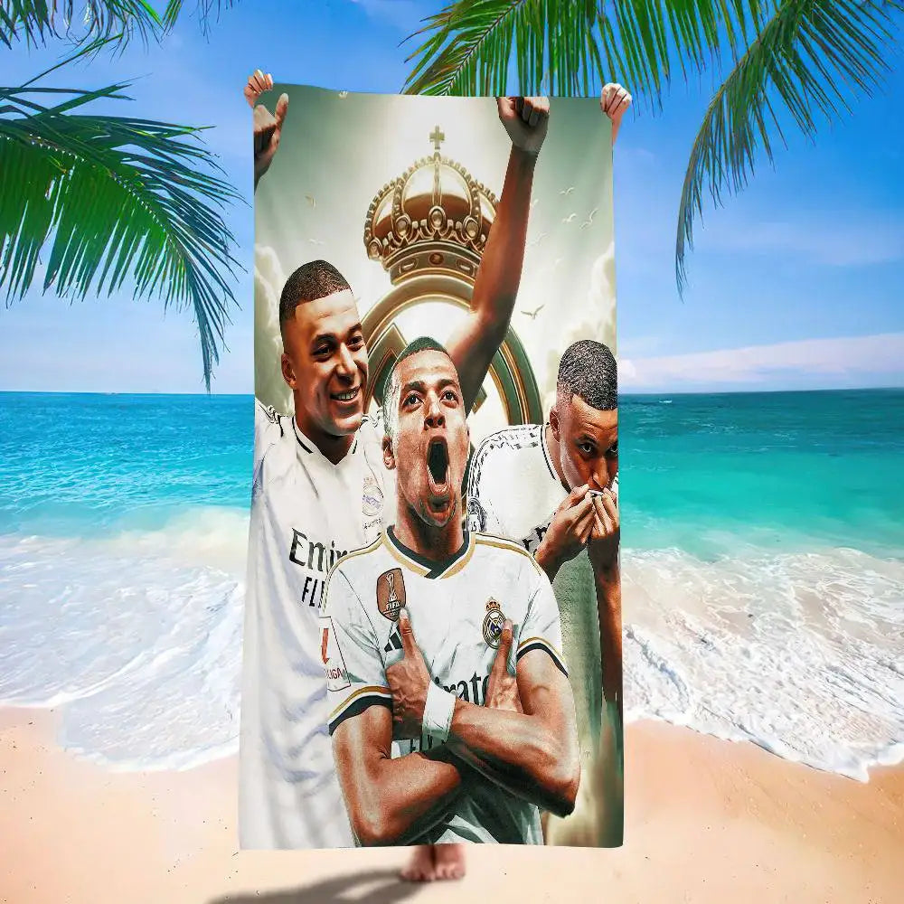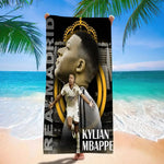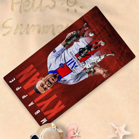 Pensée pour ceux qui aiment les univers rapides, tricolores, ambitieux et sportifs, cette serviette de bain Mbappé accompagne les passionnés de ballon rond après la douche, la piscine, ou au bord du terrain.