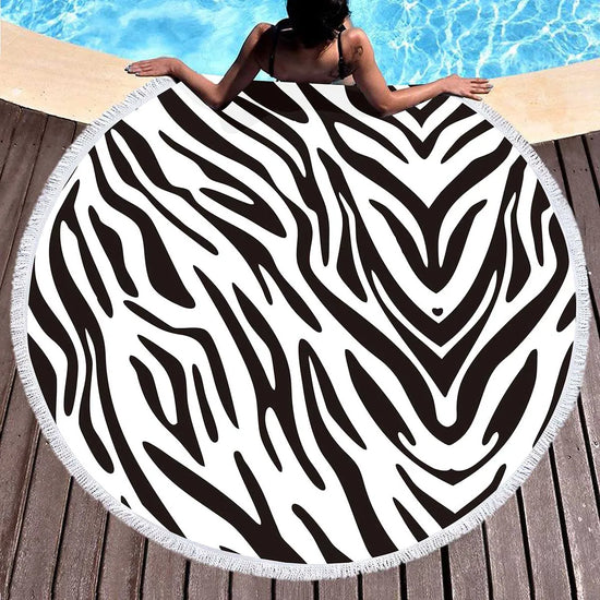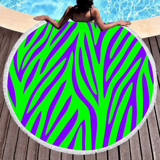 Pensée pour ceux qui aiment les styles atypiques, artistiques, bohèmes et uniques, cette serviette de bain ronde accompagne toute la famille à la plage, à la piscine, ou comme tapis de sortie de bain.