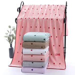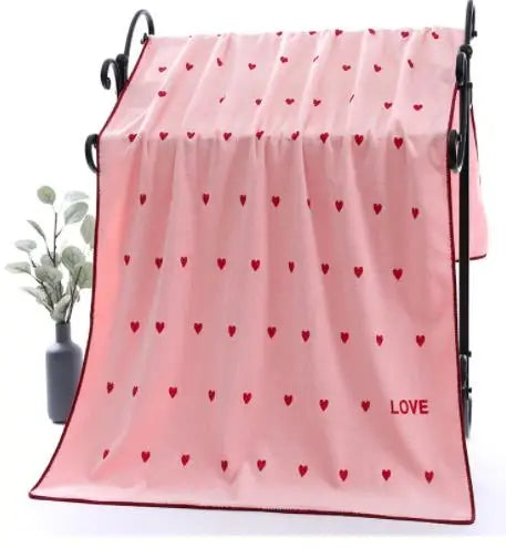 Pensée pour ceux qui aiment les designs romantiques, affectueux, tendres et poétiques, cette serviette de bain avec des cœurs accompagne aussi bien les adultes que les enfants après le bain, la douche, la piscine ou la plage.