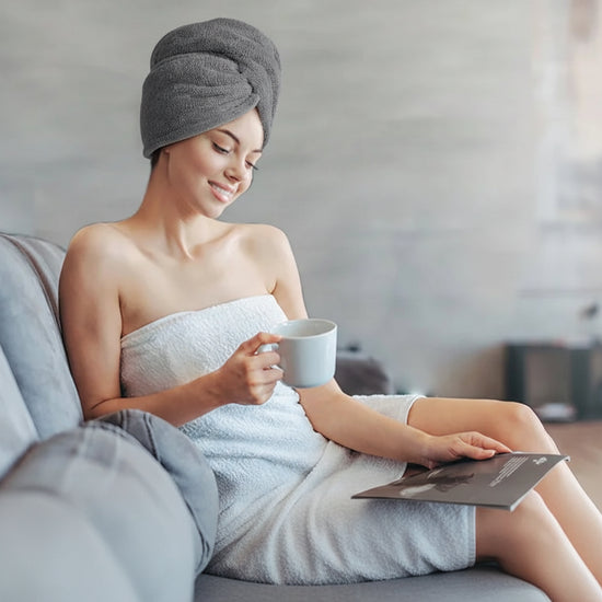 On craque pour ce système de turban qui tient parfaitement en place sur la tête ! C'est bien plus qu'une simple serviette, c'est un véritable accessoire de coiffure qui réduit le temps de séchage. Son tissu absorbant est si vaporeux qu'il absorbe l'eau en profondeur tout en laissant vos cheveux soyeux et protégés. Si vous cherchez une solution pour rester bien au chaud après votre rituel, découvrez également notre serviette de bain chauffante.