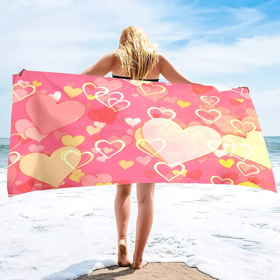 Pensée pour ceux qui aiment les univers affectueux, roses, sentimentaux et chaleureux, cette serviette de bain cœur accompagne toute la famille après le bain, la douche, ou lors d'un moment de partage en amoureux.