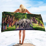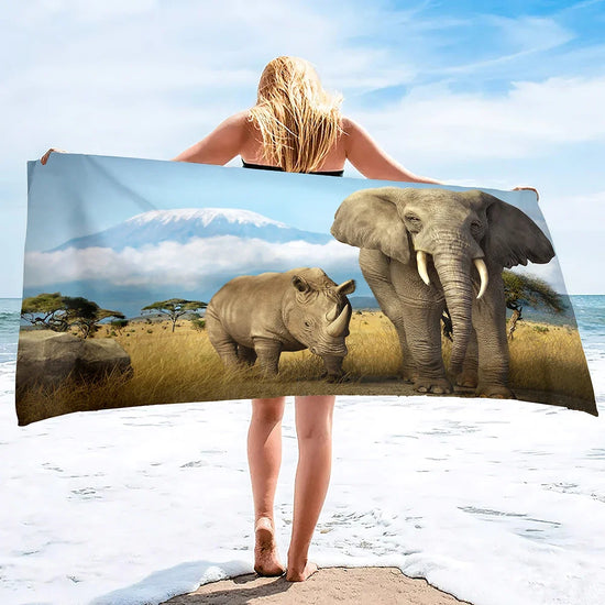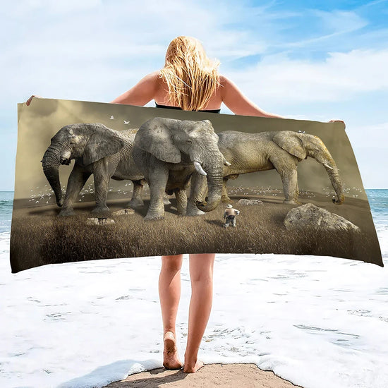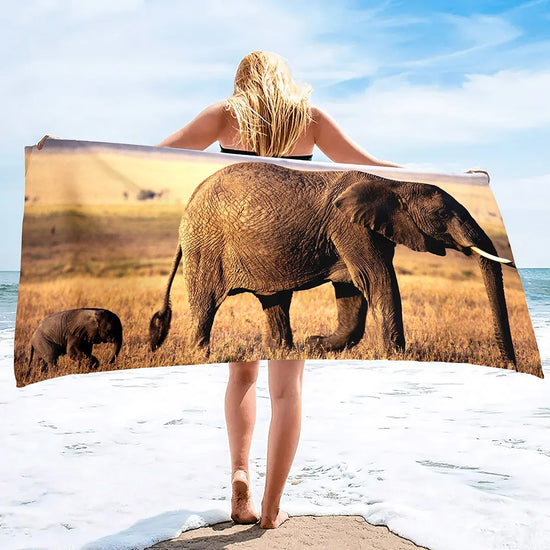Pensée pour ceux qui aiment les univers majestueux, naturels, gris et protecteurs, cette serviette de bain éléphant accompagne petits et grands après le bain, la douche, ou lors d'une journée à la plage.