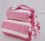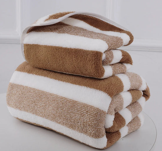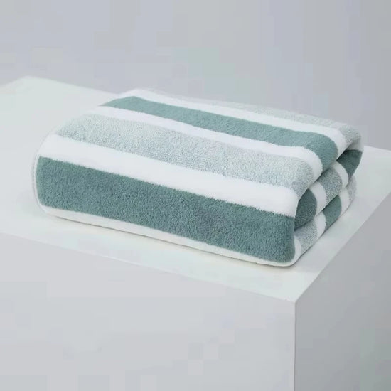 Nos serviettes de bain sont principalement fabriquées en coton de qualité, reconnues pour son excellente absorption, sa douceur au toucher et sa durabilité. Ce choix de matière garantit un confort optimal après chaque utilisation.